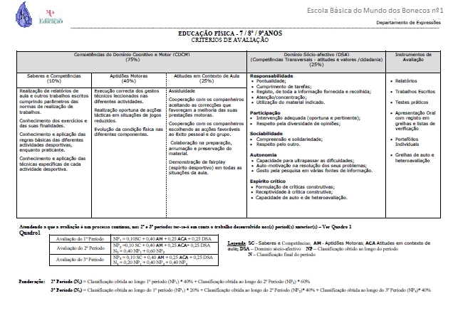 Critérios de Avaliação